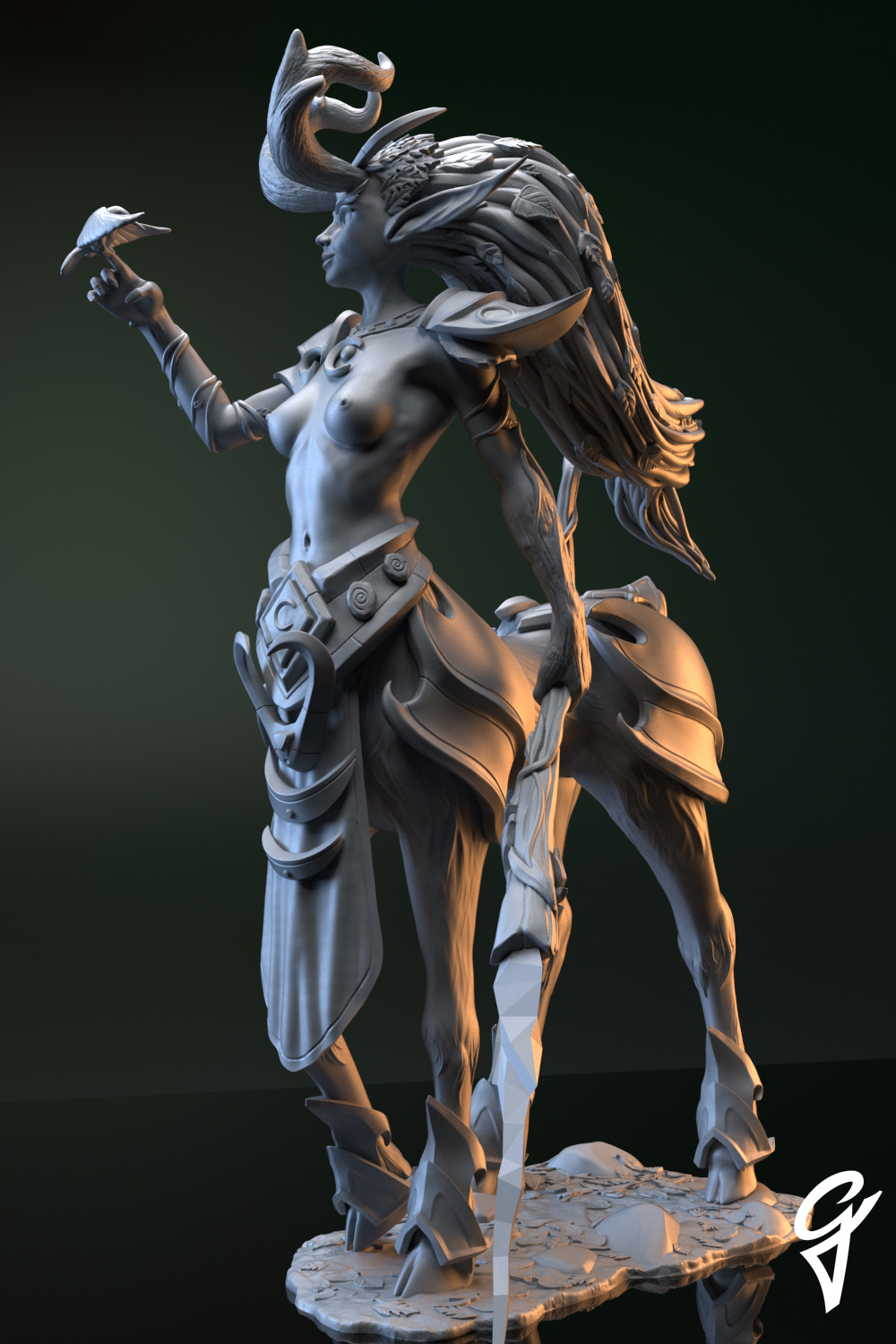 This project is the first one where the figurine is half-human/half-animal. Dryads are the keeper of nature and I tried to give her a feeling of peace while remaining a warrior.